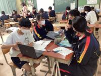 をしています。しかし、生徒達は活発に意見を交換し、メリットデメリット