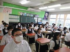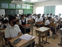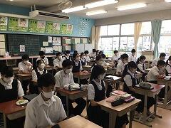 放送での校長先生の話や生徒指導主任からの話に真剣に耳を傾けています。