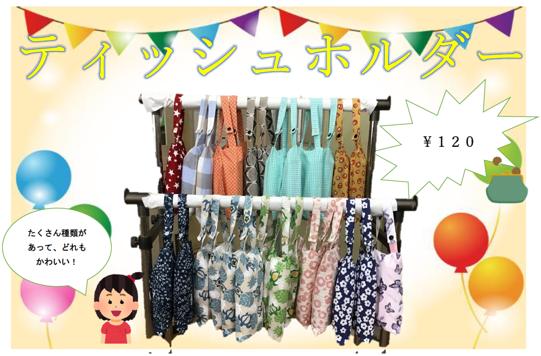 生活単元学習の時間を使って、生徒たちは、お客様が喜んでくださる製品作りに励んでいます。将来の【自立】に向けて働く学習をしています。【作品】ではなく【製品】を目指して、日々努力して作った製品です。どうぞ、いらしてください。心よりお待ちしています。
