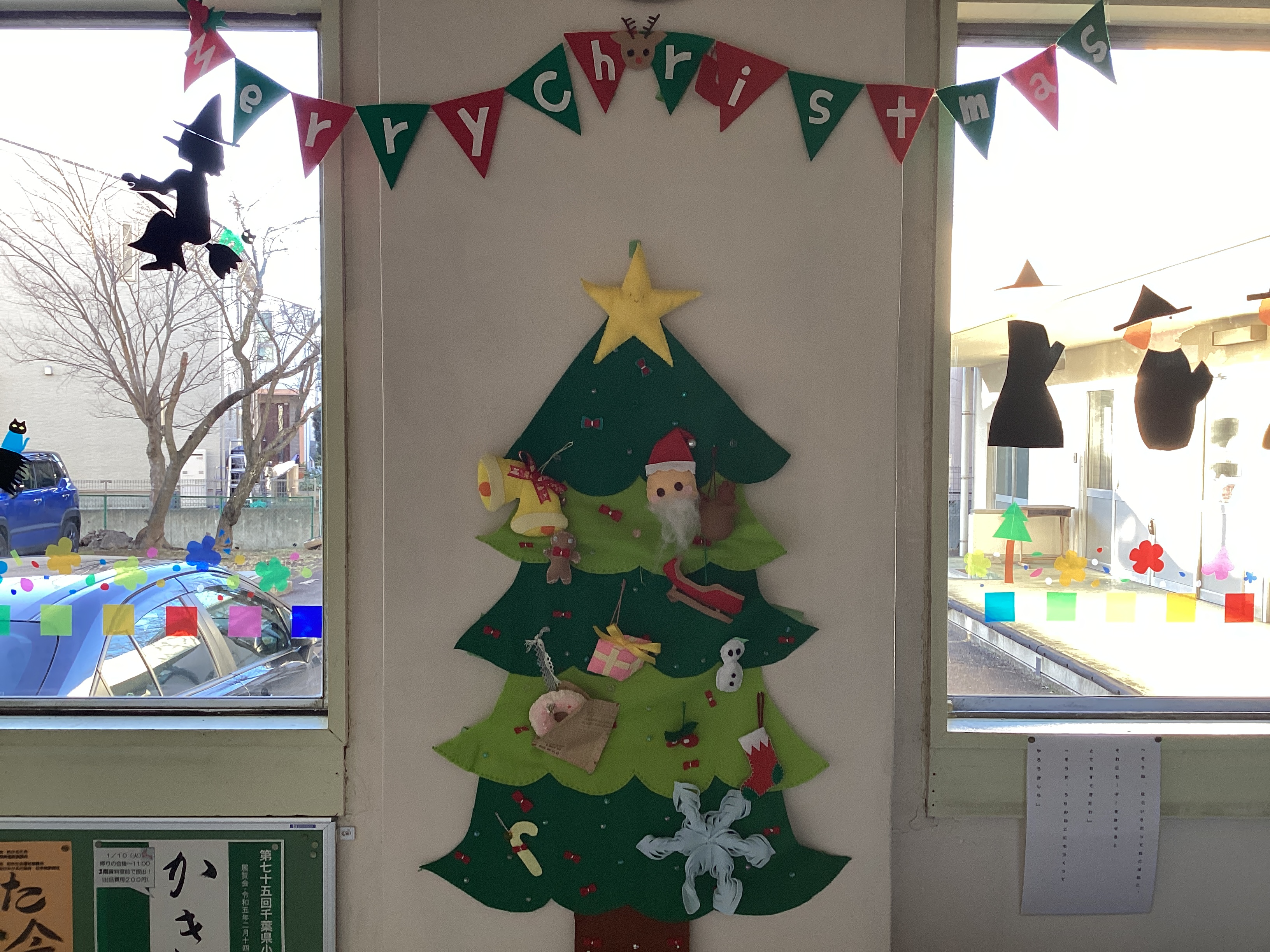 菜の花学級の教室前方の扉には、折り紙によって作られた立派な