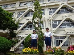生徒会長の小林さんと副会長の鈴木さんが、生徒会を代表して植樹を行いました。