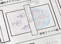 考察では、色がついたイオン(酸・アルカリの正体)を、モデルで表しています。