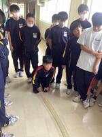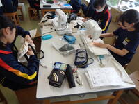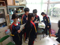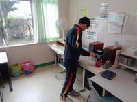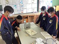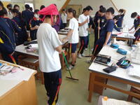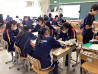 実験が終わった後、机も椅子もきれいにして帰る3年生。