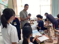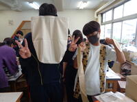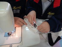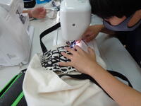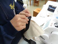 トートバッグの製作もいよいよ大詰めを迎えています。一足早く完成させた生徒もちらほらといるようです。早く終わった生徒は仲間にミシンの操作を教えるなどしながら有意義に過ごしています。