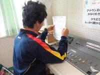 「これでお昼の放送を終わりにします。今日の放送担当は……」原稿を読む後輩を、後ろから見守るプロフェッショナル。給食終わりのチャイムにも気を配りながら、適切なタイミングでアナウンスすることの大切さを後輩に伝え、彼の最後の放送は終わりました。