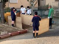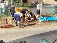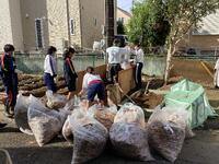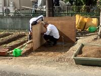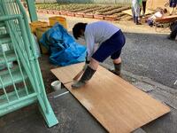 腐葉土を囲う板は学校にあった木材を加工して作っており、