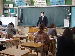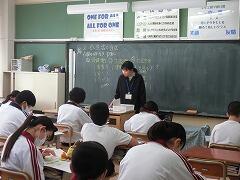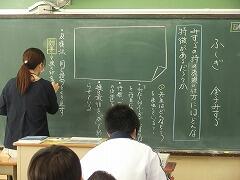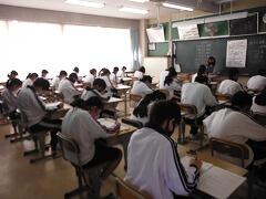 国語科の田村先生。1年生の授業です。生徒は一生懸命ノートに記入していました。