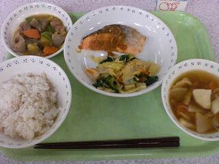 根菜の胡麻煮 投稿日時 : 2023/04/19 柏第三中学校 (今日の献立) 牛乳 ごはん 鮭のねぎみそ漬け焼き 切り干し大根のサラダ 野菜の胡麻煮 けんちん汁 *今日の献立は和食です。 1年生は4つの食器の給食は、初めてですね。 小学校に比べると量も食器の数も重さも違っていますが、 良く食べているように感じます。
