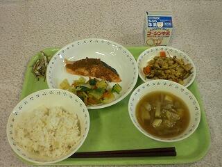 鮭のみそ漬け焼き 投稿日時 : 2024/12/03 柏第三中学校 (今日の献立) 牛乳 鮭のみそ漬け焼き おかか和え 五目豆 けんちん汁 小魚 *今日の献立は和食です。 鮭に、にんにくやねぎを加えた味噌をかけて仕上げました。 ごはんとよく合う味付けです。 大豆の五目煮は、大豆のほかに鶏肉、油揚げ、人参、しいたけ、昆布、筍と食材がたくさん入っています。味がよくしみておいしくできました。 けんちん汁は、野菜や豆腐など具沢山の汁物です。