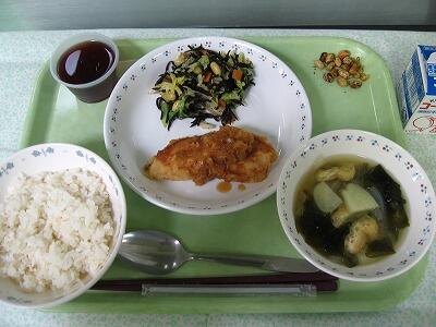 給食の献立は魚が主菜の和食です。柏市産の葱をたっぷりと使用した葱ソースを