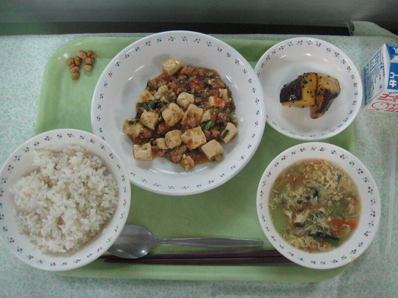 今日の給食は中華です。主菜は麻婆豆腐です。よく三中では丼としてでることが多いですが、今日は一品料理としてだしています。そのため、麻婆豆腐のそのものの味を楽しむもよし、ご飯にかけて食べるもよし!という感じになっています。