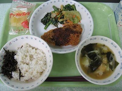 鯵フライ 投稿日時 : 2017/06/06 給食担当 牛乳ご飯 手作りふりかけ鯵フライ あけぼのソースごま和えじゃが芋のみそ汁冷凍りんご今日は和食の献立です。主食のご飯には鉄分が豊富なひじきのふりかけをつけました。主菜は鯵のフライです。さくさくの衣にふっくらとした身が食感よくおいしく食べられました。 {{options.likeCount}} {{options.likeCount}}