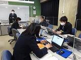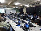 今回の研修は感染症対策で、職員を2つの教室に分けての開催となりました。