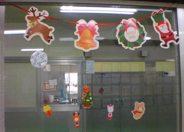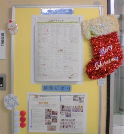 ↓給食室もクリスマスにちなんだ装飾をしています♪