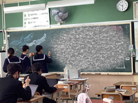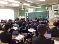 「世界の通学路」という映画の紹介をする1年生の英語の授業