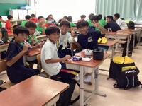 練習が終わると教室で補食を取るサッカー部の1・2年生ですが10時前