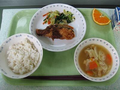 1年生はだんだん準備が早くなってきました。よく食べています。