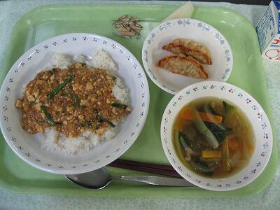 主食は麻婆豆腐飯を作りました。大豆や豆腐をたっぷり使い、