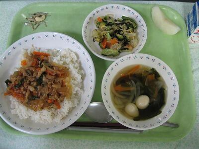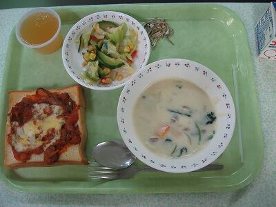 すばらしい体育祭あけの給食は、トマトスパゲティです。
