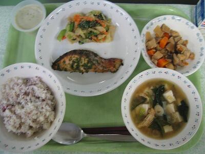 主菜の鮭には、塩こうじと青のりをつけて焼き上げました。しっとりとした