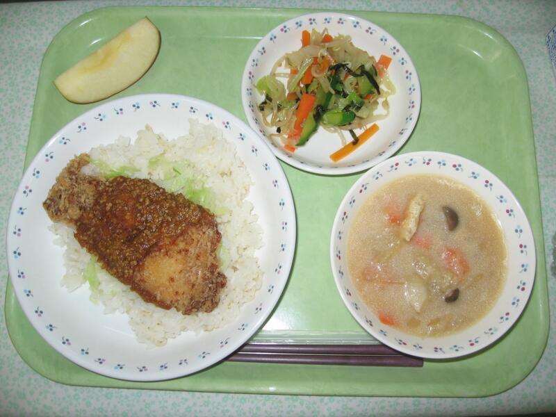 今日の献立は、洋食です。主食はチキンカレーライスです。