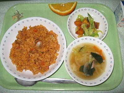 今日の主食はちょっぴりスパイシーなジャンバラヤです。