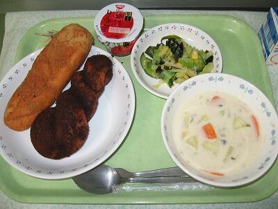 と、給食は人気の揚げパンにしました。