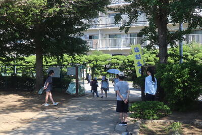 6月18日から今日までの3日間、おはよう3DAYS(地域のあいさつ運動)を実施しました。おはよう3DAYSは、現在の柏第三中学校区学校運営協議会(コミュニティスクール)の前身ともいえる、三校合同連絡協議会が始めた行事で、平成21年ころに始まったと聞いています。そのころにつくられた、のぼり旗を継承し、柏六小、柏七小、柏三中の三校で、昨年度復活させた行事です。昨年度は2日間の実施でしたが、今年度からは名前の通り3日間の開催としました。柏第三中学校区学校運営協議会のメンバーの皆さんや、PTA、地域の方々もご参加いただきました。今後も継続していきたい行事です。