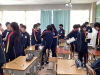 2年生は初めての卒業式練習だったので、3年生の卒業式実行委員から座り方、起立・礼の仕方などを教わりました。