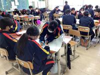 にはしっかりと授業を受ける2年生。2年生最後の国語の授業を