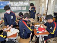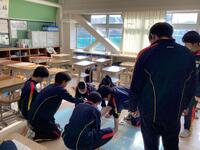 公立高校の受検がない3年生は、いつも通りの時間に登校し、三年生を送る会に向けての準備に取り組みました。写真は作業している3年生達の様子です。