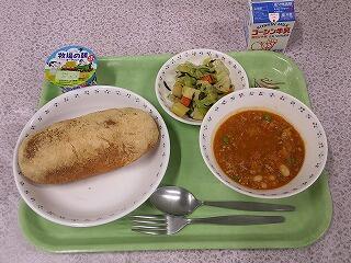 給食のボルシチは、ビーツではなくて、柏市の蕪を使って、トマト風味の味付けです。