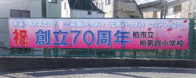 創立70周年の横断幕が出来上がり、正門入って左側に掲示いたしました。