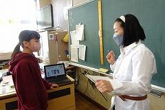 英語で伝える難しさを,タブレットPCを活用することで伝えやすくしています。伝わることの楽しさを感じ,英語で話すことに積極的になってくれるとうれしいです。