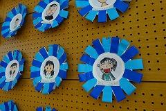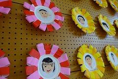 1年生と2年生が協同で作成した6年生の似顔絵入りの飾りです。似顔絵は特徴をよく捉えていて,微笑ましいです。