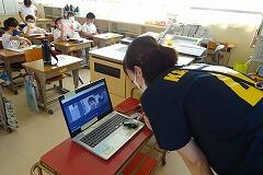 登校自粛等で家庭にいる児童も授業に参加できるよう,学校と家庭をつなぎ,授業をライブでお届けしています。教職員も初めての取組なので,試行錯誤しながらの授業づくりです。まだまだ課題はありますが,実践を通して,よりよい方法を見出していければと考えています。