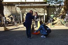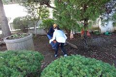 今日は,落ち葉はきをしてくださいました。四小の校庭には,たくさんの樹木や草花があります。