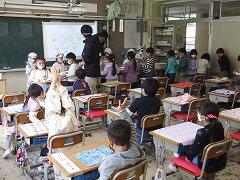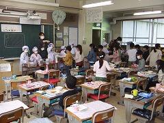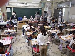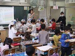 初めて(?)の給食当番の仕事を覚え、すばやく配膳することができました。