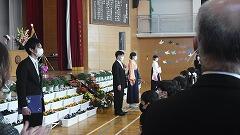 卒業式が行われました。歌唱はありませんでしたが,以前に収録しておいたクラスごとの歌声をBGMにして,卒業証書が渡されました。厳粛な中にも心に残る卒業式になりました。