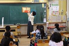 読書ボランティアが,朝の時間に読み聞かせを行っています。読み聞かせを通じて読書の楽しさを伝え,子供と本をつないでくれています。