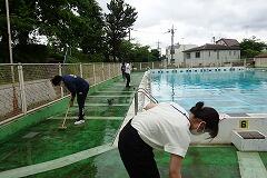 子供たちが気持ちよく水泳学習に取り組めるよう,職員で仕上げの清掃や準備をしました。