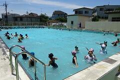 今日は,梅雨の合間の晴れ。水泳日和です。今年は,密をさけて学習しています。