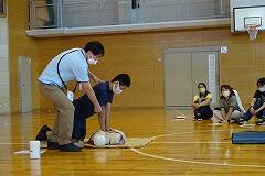 放課後,救命救急法の研修をしました。心肺蘇生法とAED使用法を学び,人形をつかって,実際に体験しました。子供と同様,大人も体験学習が大事です。