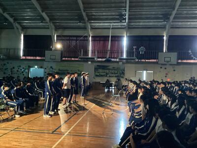 来年度の新入生への説明会が、体育館で行われました。