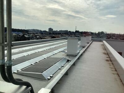 校舎屋上にある太陽光発電が稼働しました。
