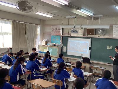 講師に日本医科大学付属病院 女性診療科・産科 豊島将文先生 をお招きして「みんなのこれからの人生でためになる話」として、体などに関する6つの話をしてくださいました。先生の話は分かりやすく、生徒も真剣に聞き入っていました。