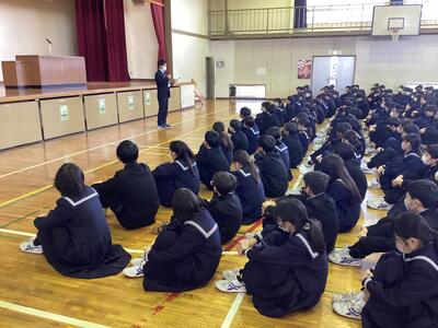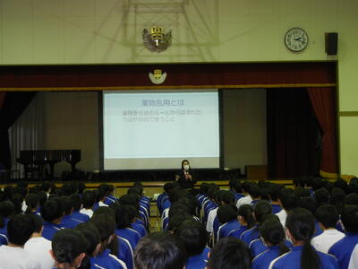11月28日(火)6校時 体育館にて非行防止(薬物乱用防止&SNS)教室を実施しました。