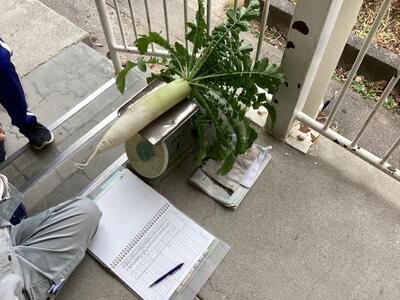 以前お伝えしました、3年生が技術科の授業で栽培している大根が収穫の時期を迎えました。