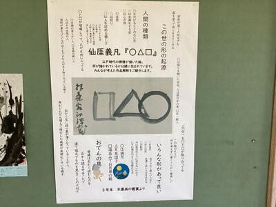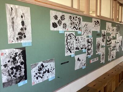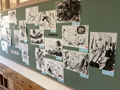3曲分の水墨画が掲示されていますが、どの作品も制作した生徒の感性が感じられ、この時期はとても寒い廊下ですが時間が経つのを忘れ作品に見入ってしまいます。