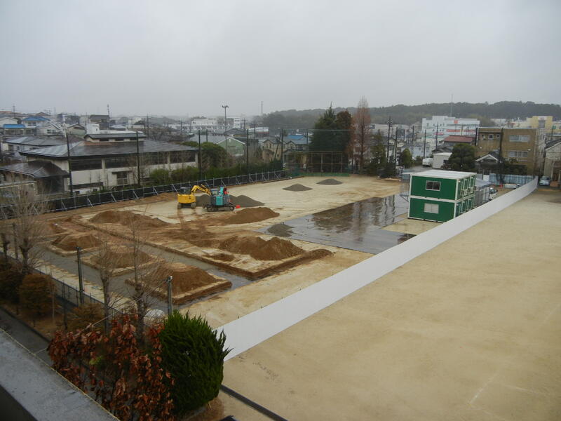 長寿命化工事のための、仮設校舎建設準備も進んでいます。